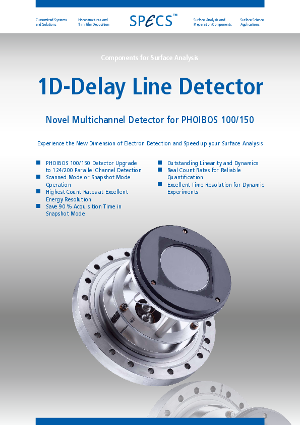 The PHOIBOS 150 NAP Analyzer is a true 180° hemispherical energy analyzer with 150 mm mean radius. It consists of a differentially pumped electrostatic pre-lens, with a three-stage differentially pumped PHOIBOS 150 analyzer. Thus, the design concept provides four separate pressure stages separated by apertures. The first pumping stage (pre-lens) is separated from the analytic chamber by a nozzle with a customizable opening at the tip with diameters between 0.3 mm and 1 mm. By using a turbopump on the pre-lens stage, a pressure difference of four orders of magnitude (compared to the analysis chamber) can be achieved.The first and second stages are separated by an aperture. An in-lens gate valve allows a high-vacuum seal between of the PHOIBOS 150 Analyzer and NAP pre-lens and enables venting of the analysis chamber and pre-lens without venting the energy analyzer.